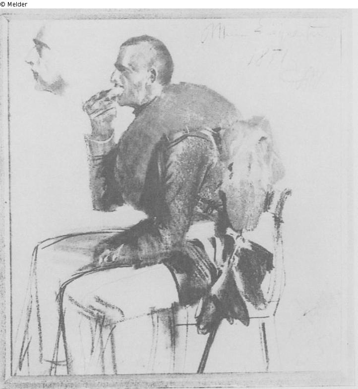 Search Request | Object report Preußischer Soldat Lost Art-ID450233 Previous Next Artist / Creator Menzel, Adolph Birth 1815.12.08, Breslau Death 1905.02.09, Berlin Place of activityBerlin TitlePreußischer Soldat Dating1851Object typeDrawingGroup of reported objectsGraphicMaterial / TechniqueChalk coloured / drawn Height 23.00 cm Width 25.00 cm Description bez. u. beschr. l.o.: Meine Einquartierung 1851 A.M. Read more Read less Provenance Hermann Paechter, Adele Paechter, Auktion H. W. Lange 5./6. April 1940, Nr. 110; Privatbesitz Hamburg Read more Read less Published since11.01.2012 Contact Dr. Monika TatzkowPositionWissenschaftlicher DokumentationsdienstPhone+49 (0) 30 64 128 13E-Mailtatzkow@t-online.de
