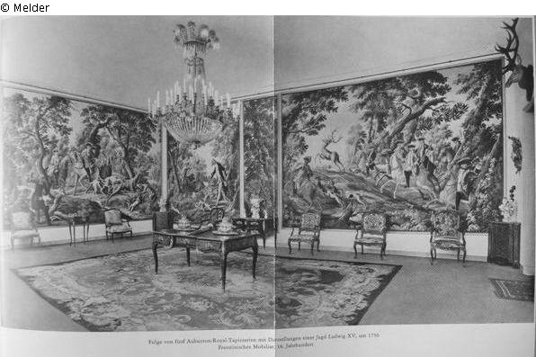 Search Request | Object report Six Aubusson tapestries with hunting scenes Lost Art-ID414687 Previous Next Artist / Creator Unknown (French) TitleSix Aubusson tapestries with hunting scenes Dating1760 (um)Object typeConsumer / interior textilesGroup of reported objectsConsumer / interior textilesMaterial / TechniqueFabric / TapestryDescription Series of six tapestries from the Aubusson tapestry manufactory: Louis XV hunting; signed: M R d'Aubusson F. Grelet Jallasson Read more Read less Provenance Remplin Castle; listed as a nationally valuable cultural asset in 1938 Read more Read less Published since2009 Contact Von Trott zu Solz LammekPositionRechtsanwälte und NotarePhone+49 (0) 30 59 00 33 00E-Mailkanzlei@vontrott-lammek.de