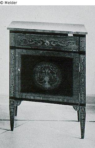 With floral arabesques. (Furnished as a music cabinet)