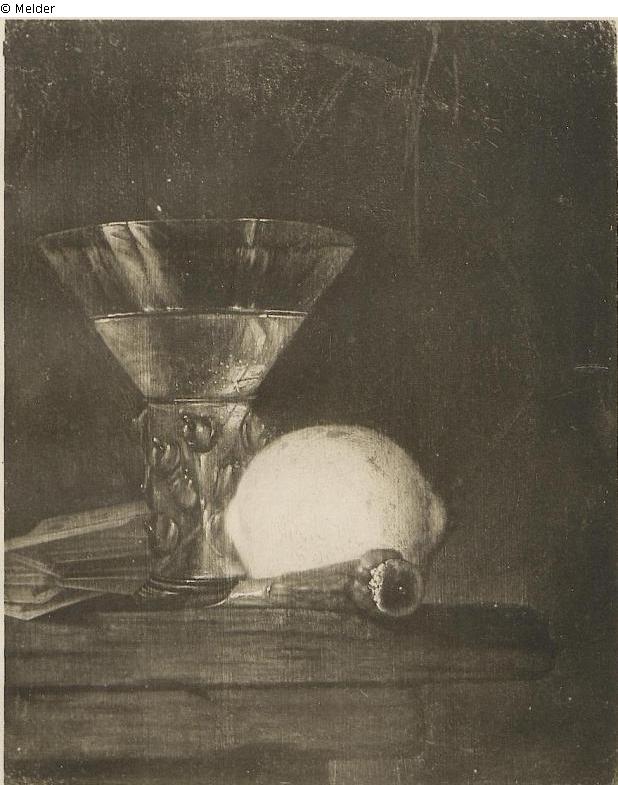 Small still life with glass goblet and lemon