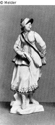 Katalog Hans W. Lange / Auktion 18.-19.11.1938, Kapitel "Porzellan. Ausländische Manufakturen", S. 101: "739. Jägerin. Stehend, die Flinte in der Rechten, mit der Linken in die Jagdtasche greifend. Weiße Kleidung mit purpurgelben und grünen Borten. Gelbe Stiefel. Flintenschaft abgebrochen. Ohne Marke. Buen Retiro, um 1760. H. 21 cm."