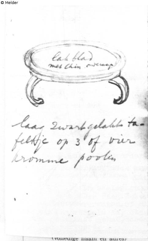 source: Algemeen Politieblad van het Koninkrijk der Nederlanden, Jg. 95, Nr. 34, 30. November 1946 publizierten Liste 719 „Te ‘s-Gravenhage ontvreemd in 1943/1944, hollandsche teekeningen, t. w.“; Intern Aangifte Formulier vom 9.5.1946, BArch Koblenz B 323/2 fol. 172 mit eigenhändiger Skizze von F. Lugt;
