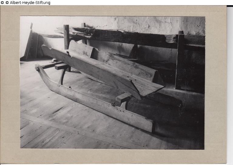 Transport for prisoners of the city of Lübben. Indentations in the upper edge of the side boards and iron rings on the runners were used to lash down the person being executed. Last used at the last execution in Lübben in 1837.