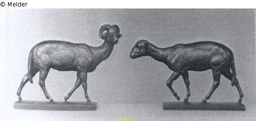 Search Request | Object report Two sheep Lost Art-ID311682 Previous Next Artist / Creator Gaul, August Birth 1869.10.22, Großauheim Death 1921.10.18, Berlin TitleTwo sheepObject typeSculptureGroup of reported objectsSculptureMaterial / TechniqueMetal (Bronze) Height 30.00 cm Width 36.00 cm Description Zwei Schafe. Bronze. Bez. A. Gaul. H. ca 30cm, Br. ca. 36cm Read more Read less Provenance Max Meirowsky; auction by Lange 18.11.1938 Read more Read less Published since2005 Contact von Trott zu Solz LammekPositionRechtsanwälte NotarPhone+49 (0) 30 59 00 33 0-0E-Mailkanzlei@vontrott-lammek.de