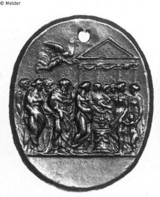 Search Request Antique wedding scene Artist / Creator Belli, Valerio Object type Medal / badge Material / TechniqueMetal (Bronze) / castLost Art-ID222204