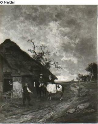 Found-Object Report Gentleman and lady on horseback in front of farmhouse Artist / Creator Breling, Heinrich Object type Painting Material / TechniqueOil ; Canvas / paintedLost Art-ID531412