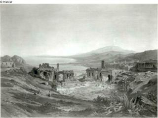 Found-Object Report Landscape with ruins near Taormina Artist / Creator Castell, Johann Anton Object type Painting Material / TechniqueOil ; Canvas / paintedLost Art-ID218891