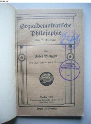 Found-Object Report Sozialdemokratische Philosophie Author Dietzgen, Josef Publisher Vorwärts Object type Book Lost Art-ID296806