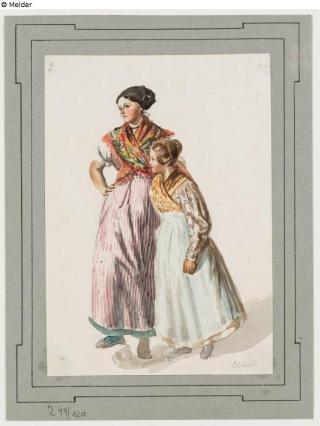 Found-Object Report Two girls in Sunday dress Artist / Creator Elsholtz, Ludwig Object type Drawing Material / TechniquePencil ; Watercolour ; Paper / drawnLost Art-ID579250