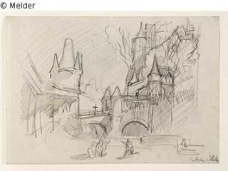 Found-Object Report Sketch of an entrance gate Stage decoration for "Oberon?" by C. M. von Weber Artist / Creator Jank, Christian Object type Drawing Material / TechniquePaper ; Pencil / drawnLost Art-ID617771