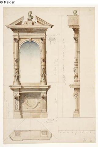Found-Object Report Sketch of a stage space (recto) Detailed sketches of a window frame (verso) Artist / Creator Jank, Christian (attributed to) Artist / Creator Döll, Heinrich (zugeschrieben) Object type Drawing Material / TechniquePaper ; Pencil / drawnLost Art-ID617785