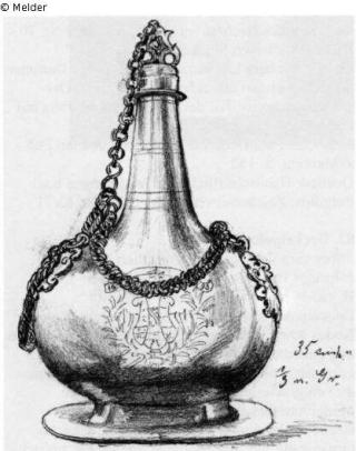 Search Request Bottle with chain Artist / Creator Meister 'IB' Object type Vessel Material / TechniqueMetal (Silver) / engravedLost Art-ID208582