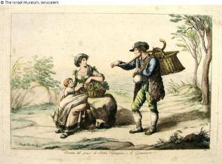 restituted Found-Object Report Woman from the Village Pietra Terrazanae and the Basket Bearer (cheese vendor) Artist / Creator Pinelli, Bartolomeo Object type Print Material / TechniqueHand-colored etchingLost Art-ID622208