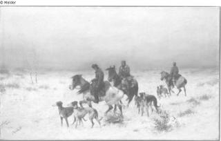 Found-Object Report Hunting party in winter landscape Artist / Creator Roubaud, Francis (Franz) Object type Painting Material / TechniqueOil ; Canvas / paintedLost Art-ID606058