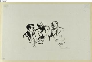 Found-Object Report Three gentlemen at the table, ex. 4/30 Artist / Creator Thiel, Johannes Object type Print Material / TechniquePaper (China paper) ; Ink / printed (lithography)Lost Art-ID319068