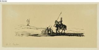 Found-Object Report Carriage with armed riders in front of a castle, ex. 2/30 Artist / Creator Thiel, Johannes Object type Print Material / TechniquePaper (China paper) ; Ink / printed (lithography)Lost Art-ID319071