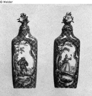 Search Request Ein Paar Flakons mit Harlekin und Kolombine in Etui Artist / Creator Unknown (Deutsch (Meißen), Porzellanmanufaktur) Object type Crafts and other folk arts Material / TechniqueCeramics (Porcelain) ; Leather (Fish skin)Lost Art-ID449224