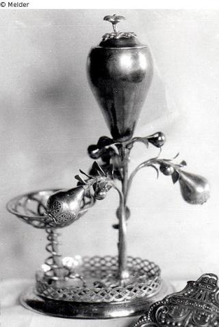 Search Request Havdalah set Artist / Creator Unknown (Augsburger Arbeit) Object type Crafts and other folk arts Material / TechniqueMetal (Silver) ; Ruby / gildedLost Art-ID590277