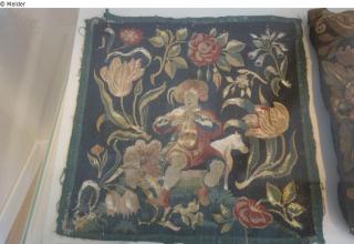 Found-Object Report Tapestry Cushion cover Artist / Creator Unknown (Niederlande oder Norddeutschland) Object type Consumer / interior textiles Material / TechniqueFabric (Wool) ; Fabric (Silk) / TapestryLost Art-ID594304
