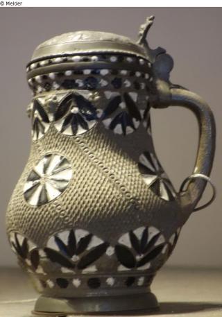 Found-Object Report Pitcher Artist / Creator Unknown (Raeren, Werkstatt Hubert Schiffer ? / Raeren, workshop Hubert Schiffer?) Object type Vessel Material / TechniqueCeramics (Clay) ; Metal (Pewter) ; Ceramics (Earthenware)Lost Art-ID594976