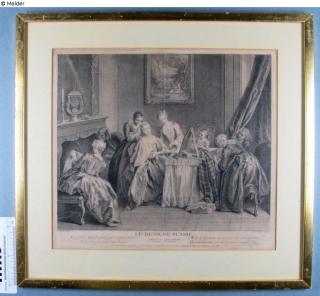 Found-Object Report Le desir de plaire Artist / Creator Surugue, Louis (after Jean-Baptiste Joseph Pater (1695 - 1736)) Object type Print Material / TechniquePaper / printed (etching) ; printed (copper engraving)Lost Art-ID622870
