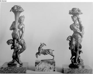 Search Request Figure of a goat and two bronze candlestick in the form of a Faunin and a Faun Artist / Creator Unknown (Italienisch) Object type Sculpture Material / TechniqueMetal (Bronze)Lost Art-ID526684
