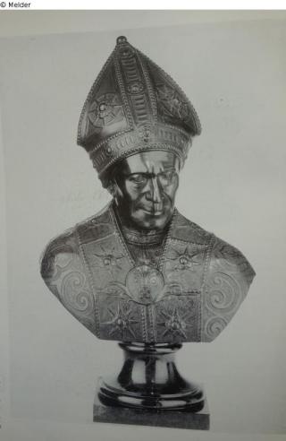 Found-Object Report Portrait / Bust of Leonardo Salutati Artist / Creator Unknown (Kopie nach Mino da Fiesole, Toskana / Copy after Mino da Fiesole, Tuscany) Object type Sculpture Material / TechniqueMetal (Bronze) / castLost Art-ID594324