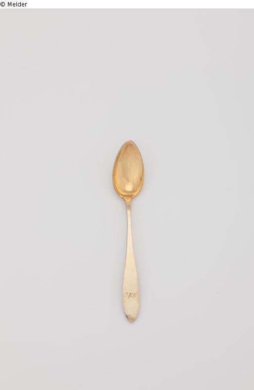 Silber, Vorderseite des Stieles graviert mit den Buchstaben "gRK"; Am Stielrücken Meisterzeichen "Wollenweber"; Beschauzeichen