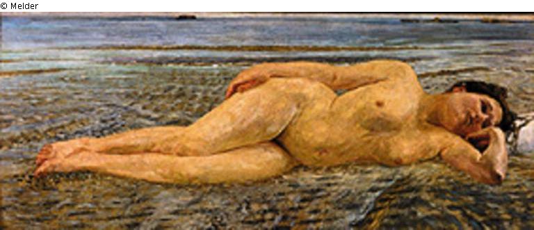 Otto Hoetzsch (14.2.1876 - 27.8.1946) war Historiker und konservativer Politiker, Epstein, Fritz T., "Hoetzsch, Otto" in: Neue Deutsche Biographie 9 (1972), S. 371-372, URL: Externer Link [15.09.2021]. Er verkaufte das Bild, damals als "Die Welle" bezeichnet, an Karl Haberstock, Berlin am 23.11.1942, siehe Haberstock Archiv HA/XXV/90, S. 277. Im Verkaufsangebot von Haberstock an GD Bucher vom 28.01.1943 wird das Gemälde ebenfalls noch "Die Welle" genannt, auch wenn es im Verkaufseintrag dann als "Liegender Akt" notiert ist, siehe HA/XXVI/9, S. 289.