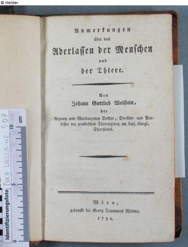 Anmerkungen über das Aderlassen der Menschen und der Thiere
