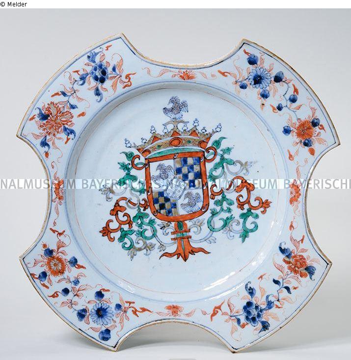 Barbierschüssel mit vier Ausnehmungen, Wappen und Blumendekor