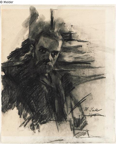 Der Kopf Rieders ist schmal, und die sind Augenbrauen sehr markant. Herr Rieder trägt einen Vollbart. Sein linkes Auge scheint ein wenig zu schielen. Den Oberkörper hat Leibl nur angedeutet.