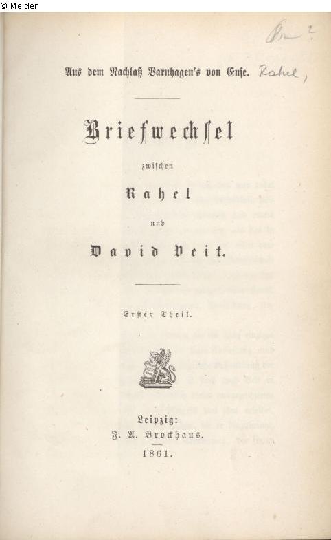 Briefwechsel zwischen Rahel und David Veit : aus dem Nachlaß Varnhagen von Ense, 1
