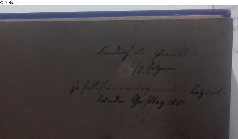 Ankauf 1984 von Buchhandlung und Antiquariat J.F.Steinkopf, Marienstraße 3, Stuttgart unter der Losnummer 1232. Im Buch selbst ist Notiz mit Tinte handschriftlich verfasst, die auf einen Friedrich hinweist. Sonst gibt es keine Hinweise. Verdachtsmoment aufgrund der Lücke im NS-Zeitraum zwischen 1933 und 1945.