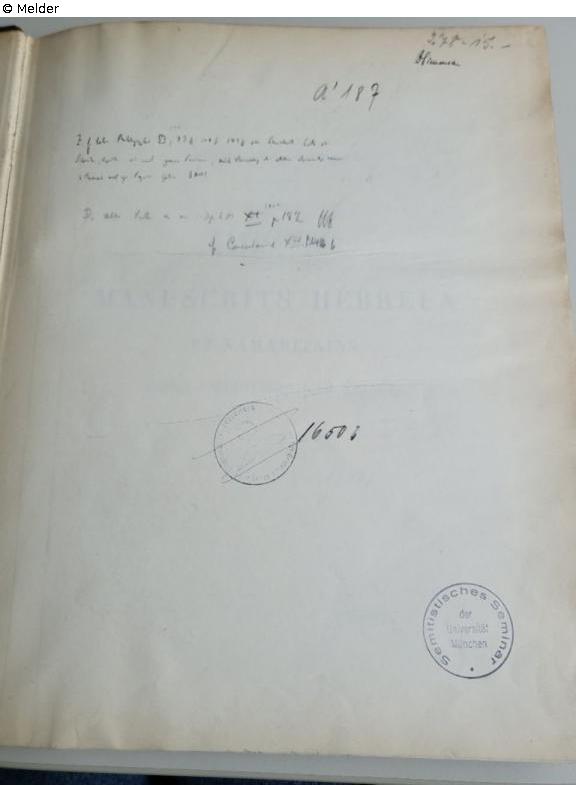 Handschriftlicher Besitzeintrag: D. Simonsen, Kopenhagen, 1933 (eventuell Rabbi David Jacob Simonsen 1853-1932 Kopenhagen, Rabbiner und Gelehrter, seine Privatbibliothek umfasste 45000 Bände und wurde von der Royal Library erworben.).