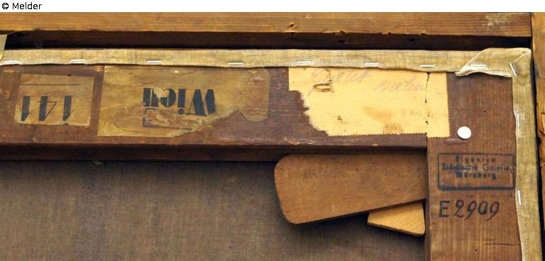 Porträt Frau von Muhr, geb. von Ricci, Preßburg; Signatur u. l.: 1834 Künstlerzeichen; Aukt.-Kat.: Dorotheum [Hrsg.]: Gemälde des 15. bis 20. Jahrhunderts, Aquarelle, Handzeichnungen, Miniaturen, Graphik, Skulpturen, Möbel, Bildteppiche und sonstige Textilien, Arbeiten in Gold, Silber, Zinn u. a. Metallen (Waffen), Ostasiatisches Kunstgewerbe: Versteigerung: 24., 25., 26. und 27. Februar 1942 (Katalog Nr. 471) Wien, 1942, Los 111, S. 11, Tafel 29; Aufkleber "Wien" und "141" sowie Zettel "Gurlitt Berlin"