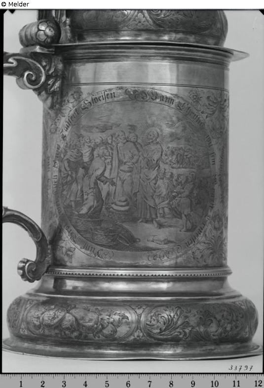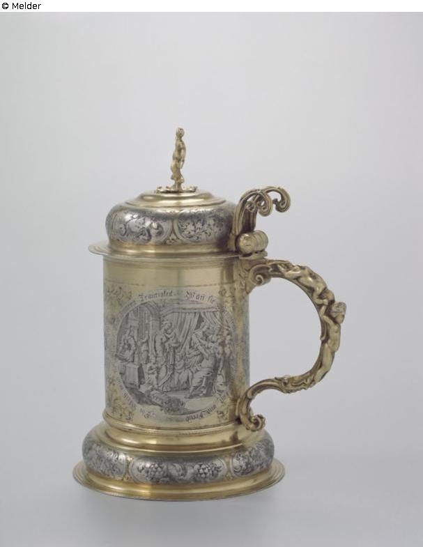 Provenienzforschung: Hedwig Ullmann (1872-1945) und ihre Familie wurden durch die Nationalsozialisten verfolgt. Einen Teil ihrer Sammlung mussten sie zwischen 1935 und 1937 versteigern, ein Teil der Objekte konnte 1938 zu Arthur Kauffmann (1887-1983), einem befreundeten Kunsthändler, gebracht werden. Kauffmann wurde ebenfalls verfolgt und flüchtete 1938 von Frankfurt nach London. Hedwig Ullmann und ihre Angehörigen verliessen Deutschland im selben Jahr Richtung Australien. Der Verkauf des Deckelhumpens an das SNM hängt wahrscheinlich mit der Flucht der Familie zusammen, weshalb ein NS-verfolgungsbedingter Entzug vorliegen könnte.