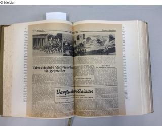 Anstreichungen, Notizen, eingelegte Zeitungsausschnitte 1930-1940; erworben (Neuling) 1943