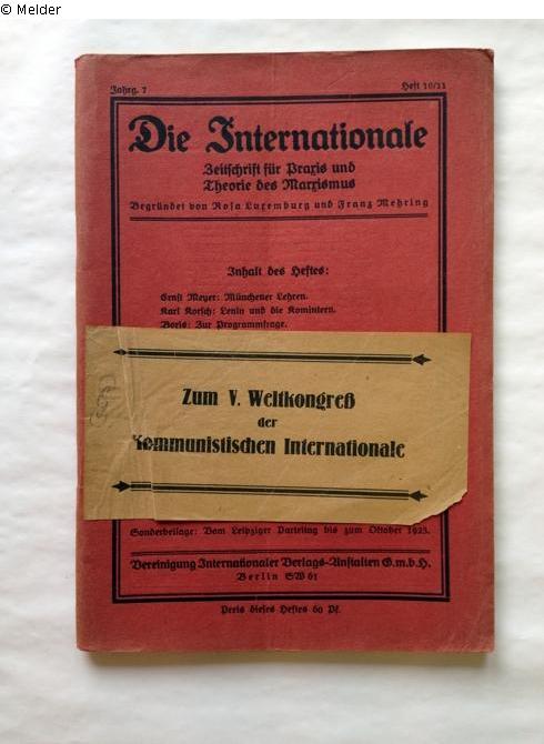 Fundmeldung | Einzelobjekt Die Internationale (Jg. 7, Heft 10/11). Zeitschrift für Praxis und Theorie des Marxismus. Begründet von Rosa Luxemburg und Franz Mehring Lost Art-ID520879 Vorherige Weiter Autor:in Zentrale der Kommunistischen Partei (Hg.) Drucker:in Friedrichstadt-Druckerei, Berlin Verlag Vereinigung Internationaler Verlags-Anstalten TitelDie Internationale (Jg. 7, Heft 10/11). Zeitschrift für Praxis und Theorie des Marxismus. Begründet von Rosa Luxemburg und Franz MehringErscheinungsortBerlin Erscheinungsdatum1924ObjektartBuchObjektgruppeBibliotheksgutSignaturo.Nr.Provenienz unbekannt Weiterlesen Weniger anzeigen Veröffentlicht seit11.08.2014 Kontakt Provenienzforschung, Hausarchiv, Bibliothek Potsdam-Museum - Forum für Kunst und Geschichte Am Alten Markt 9 14467 Potsdam Deutschland Tel+49(0)331 - 289 6821Fax+49(0)331 - 289 6808E-Mailmuseum-geschichte@rathaus.potsdam.deHomepagehttp://www.potsdam.de/potsdam-museum