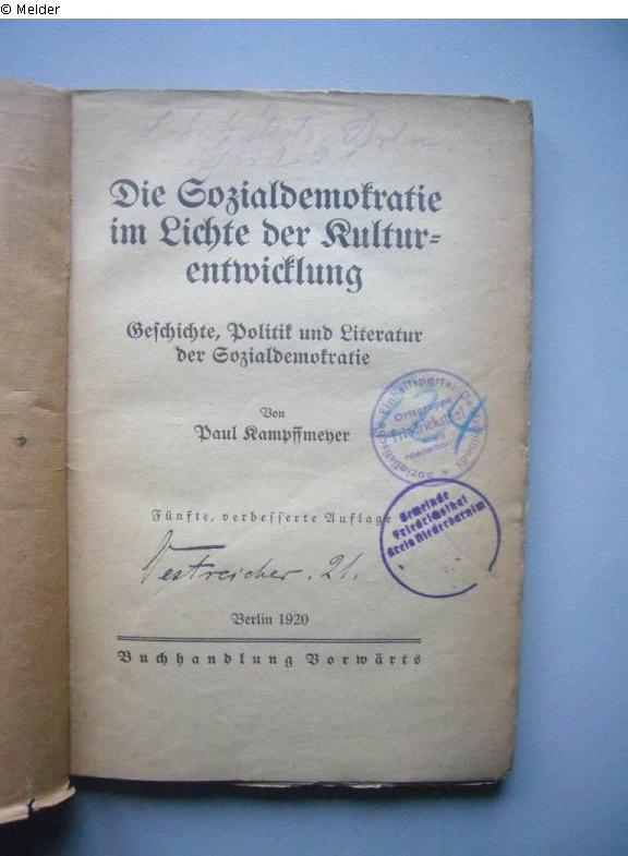 Die Sozialdemokratie im Lichte der Kulturentwicklung. Geschichte, Politik und Literatur der Sozialdemokratie. (5., verbesserte Auflage)