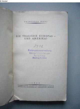 auf Blatt vor Schmutztitel: "Dr. Harry Wotizky, prakt. Zahn-Arzt, W. 15, Joachimsthalerstr. 33/34" [Stempel]; auf Titelblatt: "Kreismuseumsverwaltung Königs Wusterhausen, Rat des Kreises, Abteilung für Kultur" [Stempel], 2902 [Signatur, Bleistift]; auf Umschlagrücken: 320 [Stempel u. Ausbesserung]