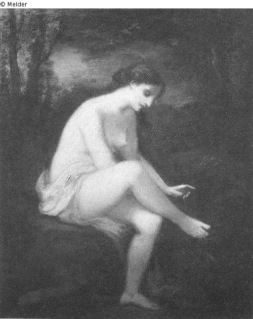 Bezeichnet links unten: >...N... Diaz 62<; Befund der Rückseite: Auf dem Keilrahmen: handschriftlich: Maßangaben; handschriftlich mit blauem Stift: >5745< (CCP München, Münchner Nr.); Inventaraufkleber der BSTGS. - Auf dem Zierrahmen, obere Leiste: Aufkleber, handschriftlich darauf mit Bleistift links: >S (oder G). H.G./466 /[mit blauem Stift] 319<, in der Mitte: >F<, rechts: >Diaz/Venus<; unter dem Zettel mit roter Kreide: >RM 677 [durchgestrichen]< (Nummer des Inventars Reichsmarschall); handschriftlich, mit blauem Stift: >5745< (CCP München, Münchner Nr.); Rechte Leiste: handschriftlich mit weißer Kreide: >G-830< (Transportnummer für das Amerikanische Inventar).