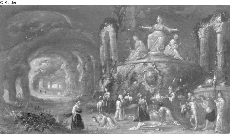 Felsgrotte mit Opferszene vor einer weiblichen Gottheit