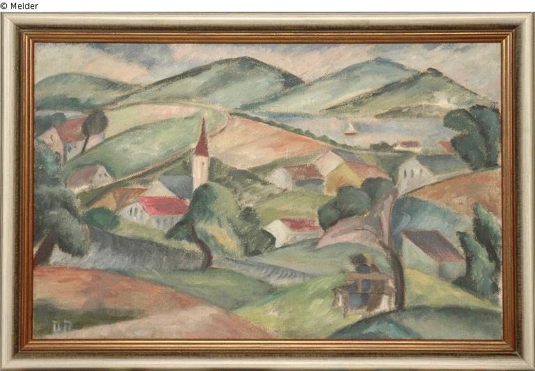 Ein Gebirgsdorf in der Nähe von München. Gemälde im Rahmen. Bez. l. u.: "DB". Provenienzmerkmale auf der Rückseite: Klebeetiketten von "Galerie Thannhauser", "Kestner Gesellschaft Hannover", div. handschriftliche Vermerke.