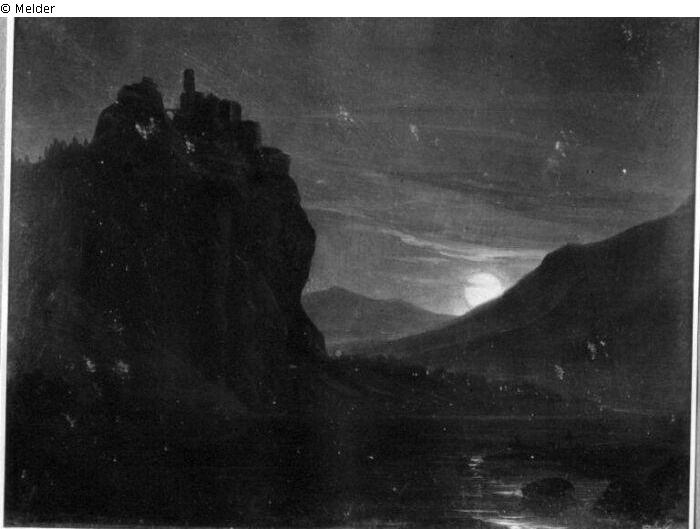 Fundmeldung | Einzelobjekt Gebirgstal mit Schloß Schreckenstein Lost Art-ID220961 Vorherige Weiter Hersteller/Künstler:in Castell, Johann Anton Geburt 1810.06.03, Dresden Tod 1867.07, Dresden WirkungsortDresden TitelGebirgstal mit Schloß SchreckensteinObjektartAquarellObjektgruppeGrafikMaterial / TechnikWasserfarbe ; Pappe / aquarelliert Höhe 20,50 cm Breite 26,00 cm Inventarnummermü9575Beschreibung Links auf hohem Felsen die Burg, von links nach rechts der Fluß, halbrechts Boot. Mittelgrund Städtchen, darüber Berge und Vollmond. Weiterlesen Weniger anzeigen Bestand Kulturgüter aus dem ehemaligen ReichsvermögenProvenienz im Februar 1943 aus dem Nachlaß von Dr. Hans Posse vom Deutschen Reich erworben Weiterlesen Weniger anzeigen Veröffentlicht seit2001 Kontakt Kunstverwaltung des Bundes Herbert-Bayer-Straße 5 13086 Berlin Deutschland E-Mailprovenienzforschung@kvdb.bund.deHomepagehttp://www.kunstverwaltung.bund.de