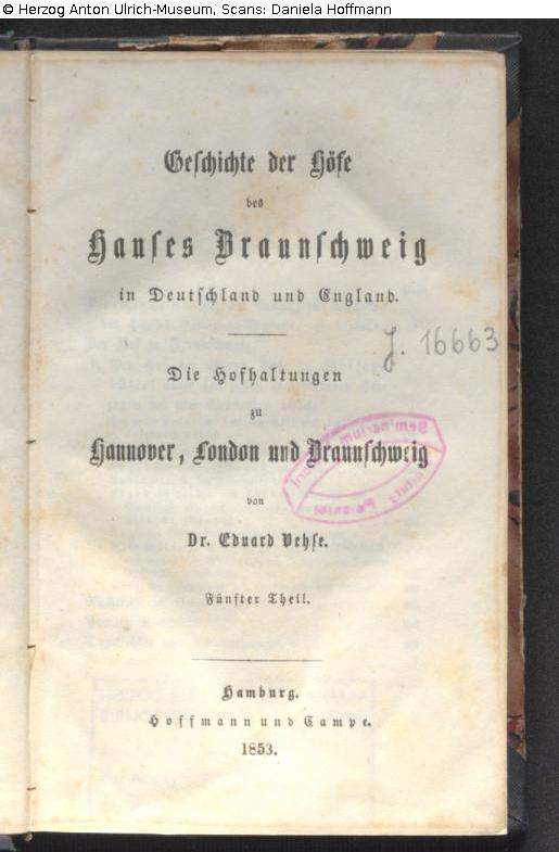Geschichte der deutschen Höfe seit der Reformation. Dritte Abtheilung: Geschichte der Höfe des Hauses Braunschweig in Deutschland und England. Die Hofhaltungen zu Hannover, London und Braunschweig. Fünfter Theil