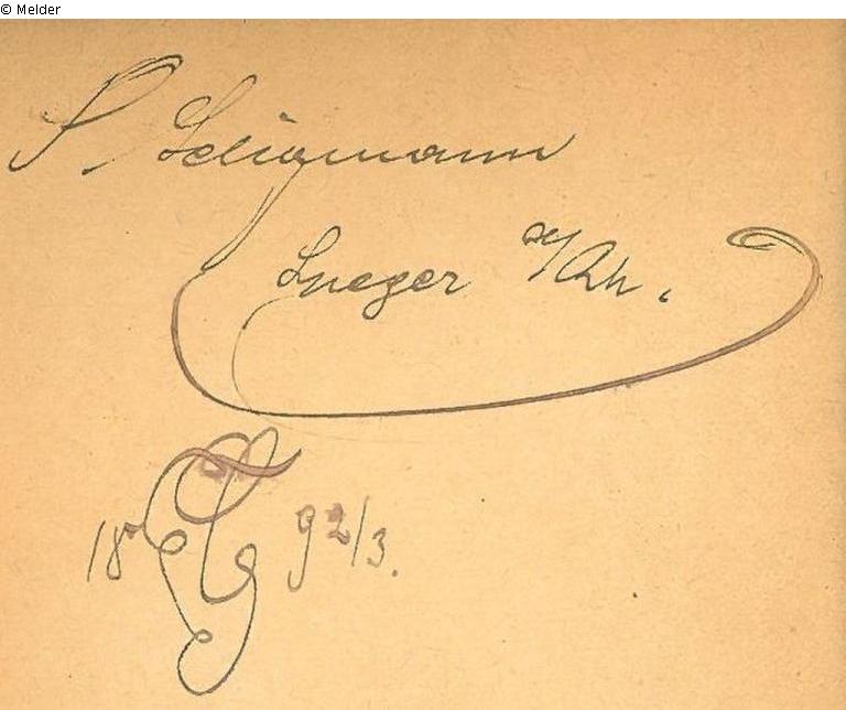 NS-Raubgut 1.) Geschenk der Stadt Speyer an die Saarpfälzische Landesbibliothek 1941 im Zuge der Deportation der saarpfälzischen Juden am 22.10.1940 nach Gurs (Frankreich) 2.) Autogramm "S. Seligmann Speyer a. Rh. 1892/3.": Seligmann, Sigmund, geb. am 22.5.1879 in Speyer, Kaufmann; 1940 nach Gurs deportiert; verst. am 15.12.1940 ebd.