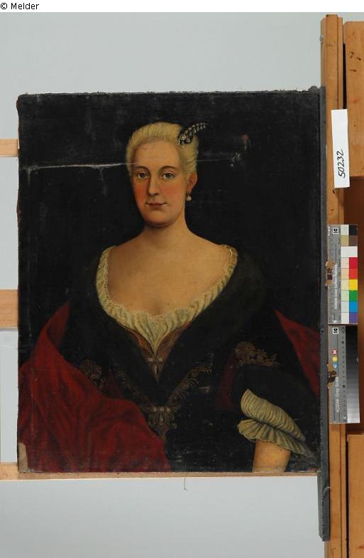 Fundmeldung | Einzelobjekt Hedwig Margarethe Baronin von der Goltz, geb. Staroscina Valewska, geb. 11.9.1692 Lost Art-ID589869 Vorherige Weiter Hersteller/Künstler:in Unbekannt TitelHedwig Margarethe Baronin von der Goltz, geb. Staroscina Valewska, geb. 11.9.1692 Datierung1748ObjektartGemäldeObjektgruppeMalereiMaterial / TechnikÖl ; Leinwand / gemalt Höhe 79,00 cm Breite 63,00 cm InventarnummerGK I 50232Provenienz Provenienz 1933-1945 nicht geklärt. 1946/1948 SMAD-Beschlagnahmung, Kontrollpunkt Wittenberge Weiterlesen Weniger anzeigen Veröffentlicht seit22.07.2020 Kontakt Stiftung Preußische Schlösser und Gärten Berlin-Brandenburg 14469 Potsdam Deutschland Postfach 601462 14414 Potsdam Deutschland Tel(0331) 96940Fax(0331) 9694101Homepagehttp://www.spsg.de Ansprechpartner:in Dr. Samuel WittwerPositionDirektor der Schlösser und SammlungenTel+49 (0) 331 96 94 307E-Mailschloesserdirektion(at)spsg.de Ansprechpartner:in Dr. Ulrike Schmiegelt-RietigPositionProvenienzforschungTel+49 (0) 331 96 94 874E-Mailu.schmiegelt@spsg.de