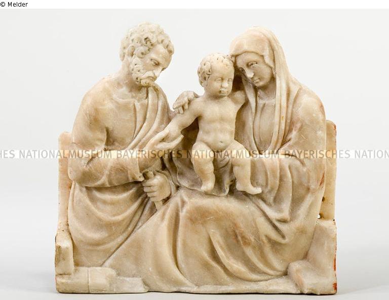 url: https://www.bayerisches-nationalmuseum.de/sammlung/00079281; Befund: Auf der Rückseite des Reliefs befindet sich nur die Inv-Nr. des Bayerischen Nationalmuseums. Keine weiteren Kennzeichnungen. Spuren des roten Papieres, mit dem der Rahmen ausgeschlagen war, sind auf der Rückseite des Reliefs noch feststellbar. Zugehörig ein vergoldeter Holzrahmen 65/124.2. Befund: Der vom Relief abgelöste Rahmen trägt auf der Rückseite folgende Beschriftungen: mit blauem Stift 6223/3 (Münchner Nummer Central Collecting Point); Darunter mit Bleistift die Nummer "105" (Nummer des Unterstein Skulpturen Inventars); darunter, leicht nach rechts verschoben mit Bleistift 6223/3 (Münchner Nummer Central Collecting Point); Alle Nummern wurden nachträglich mit blauem Stift durchgestrichen. An der Leiste des Rahmens rechts handschriftlich mit blauem Stift die Nummer H 1347 (mittlerweile inaktive Inventarnummer des Bayrischen Nationalmuseums. Anhängend Papp-Etikett, darauf mit blauem Stift 6223/3 (Münchner Nummer Central Collecting Point); Auf der Rückseite mit blauem Stift "H 1347". Beide mit Kugelschreiber durchgestrichen und hinzugefügt: inaktiv. Sowie "65/124.2".