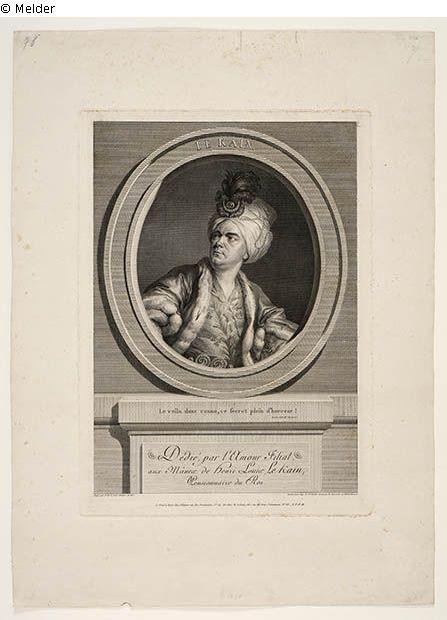 Brustbild in einem Oval auf Sockel mit Widmung. Er trägt ein kostbares Gewand und einen Turban.
